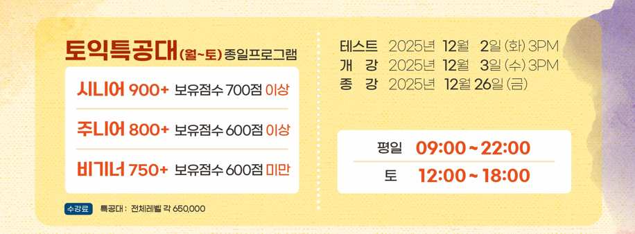 2025년 12월 토익특공대 개강 안내 - 12월 3일(수) 15시!